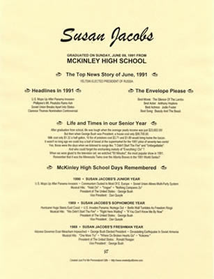 give every classmate a personalized printout that includes the school's name, the individual's name, and a page full of school memories.
