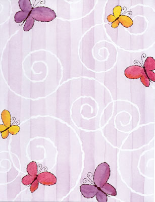 Cartoon butterflies on a lavender background