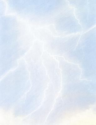 Streaks of lightning enhance this pastel image.