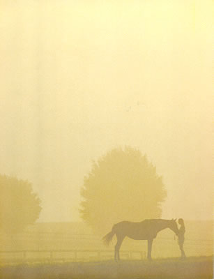 A rider and horse share the quiet of dawn.