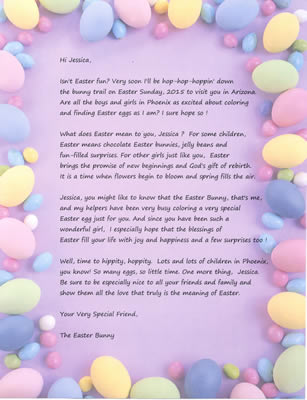 amazement at receiving a personal letter from Santa, the Easter Bunny,